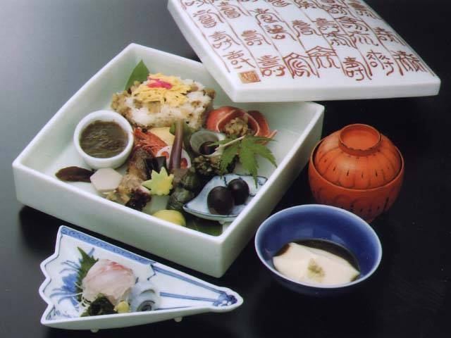 創業昭和37(1962)年の日本料理店。季節の産物を使った料理は、上質の有田焼に盛られて食膳に上る。陶箱弁当は有田焼の大きな蓋物に多彩な料理を盛り合わせたもの。