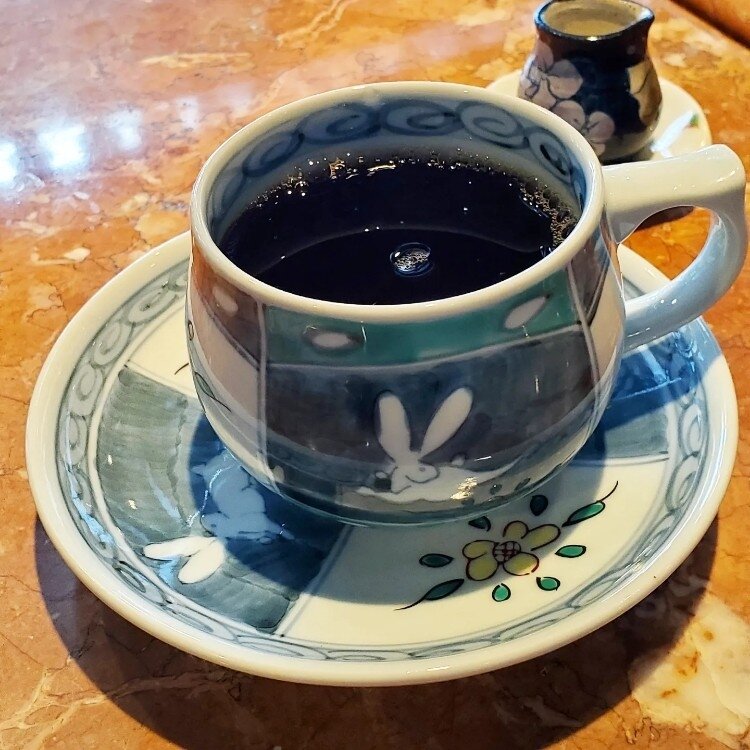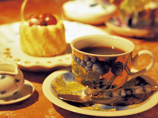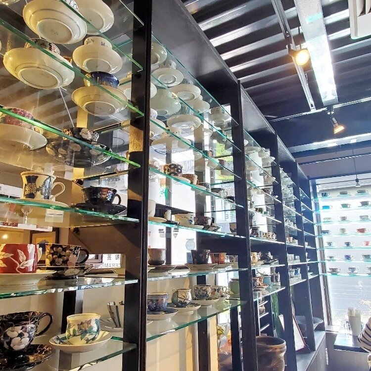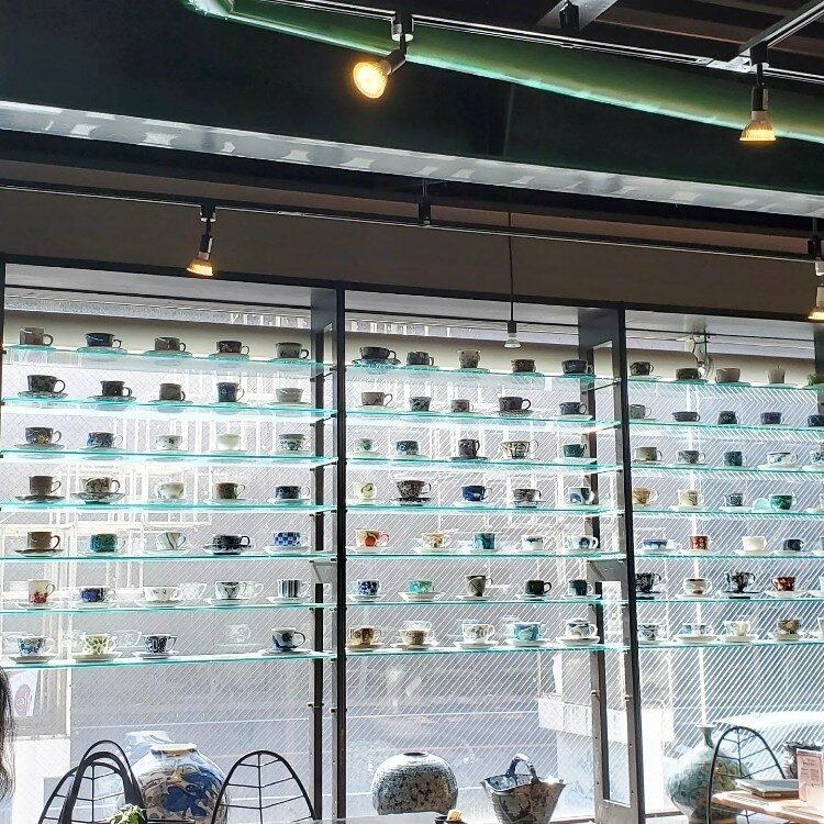 国道35号沿いの喫茶店。有田名物の「ごどうふ」が味わえるほか、2000種以上の有田焼、伊万里焼のカップとソーサーから好みのものを選んでコーヒーが飲める。