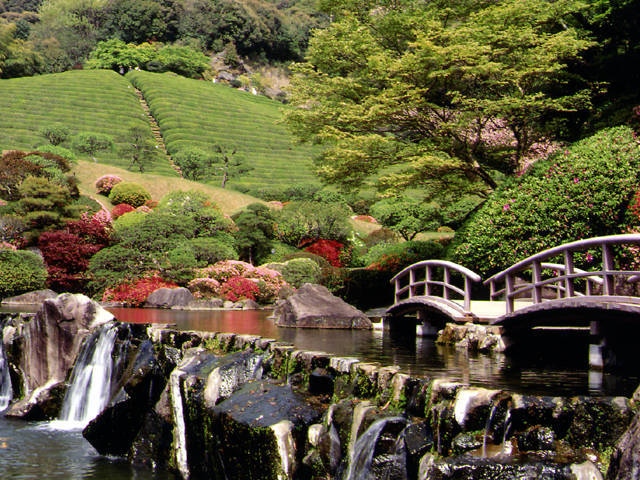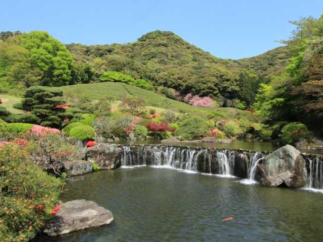 壮大な岩山を背景とする3000坪の慧洲園には、茶屋があり、抹茶や菓子などを味わいながら憩いのひとときが過ごせる。