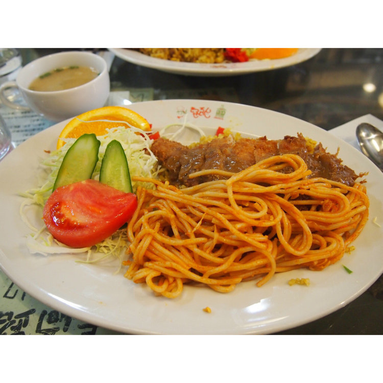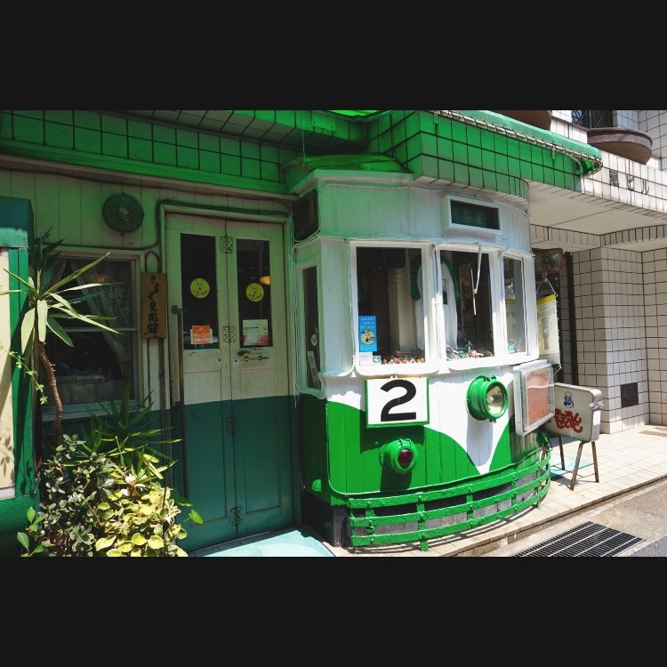 厚みのある大きなとんかつに、スパイスの効いたカレーソースがかかるトルコライスが看板メニュー。店は実際に走っていた路面電車のシートやつり革などを譲り受けたもので造っていて、鉄道ファンの間で有名。