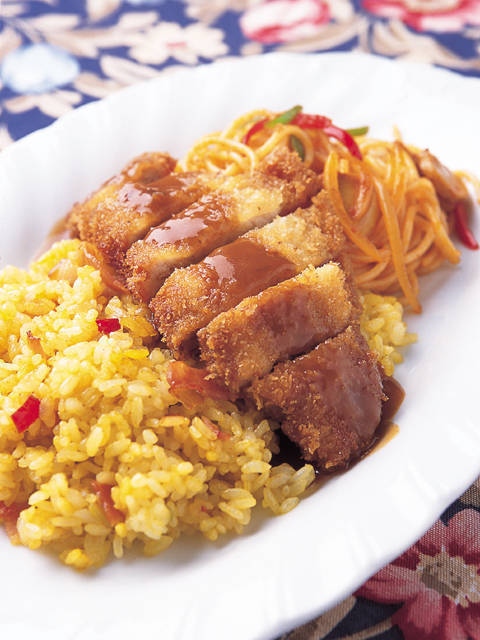 シェフの父親は、トルコライスを考案した料理人。元祖の味を、欧風にアレンジしたのがこの店のトルコ風ライス。白ワインをフランベしたドライカレー、バターで香ばしく仕上げたカツレツがのる。