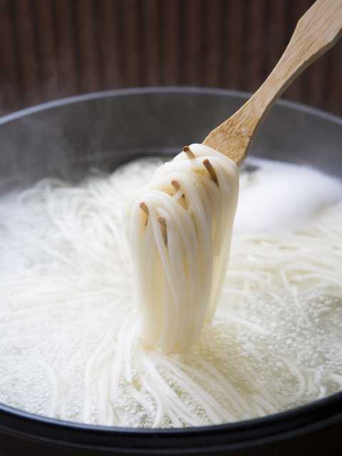 上五島名物の五島うどんが評判の店。五島うどんのもっともポピュラーでおいしい食べ方とされる地獄炊きは、焼きアゴ(トビウオ)を使い、専用にだしをとるため、2時間前までの予約制。五島うどんは通常乾麺だが、ますだ製麺が直営するこの店では、半生麺の五島うどんも味わうことができる。
