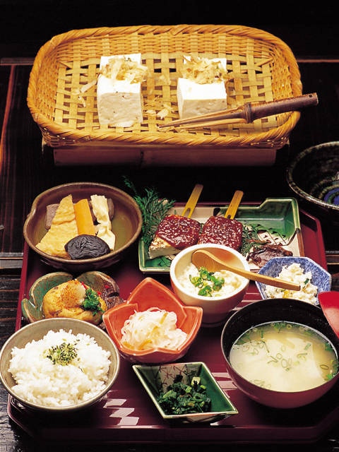 天然にがりで作る豆腐の店。吟味した大豆と天然にがり、筑後川源流の水で作る豆腐料理は、ずっしりと重くてこくがある。定食には夏は冷奴、冬は湯豆腐をメインに豆腐田楽などが付く。