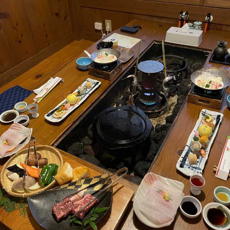 夕食はお部屋食。4名様以上のお客様は個室会場にて・ご宿泊者無料(当日予約制)の貸切風呂有り。