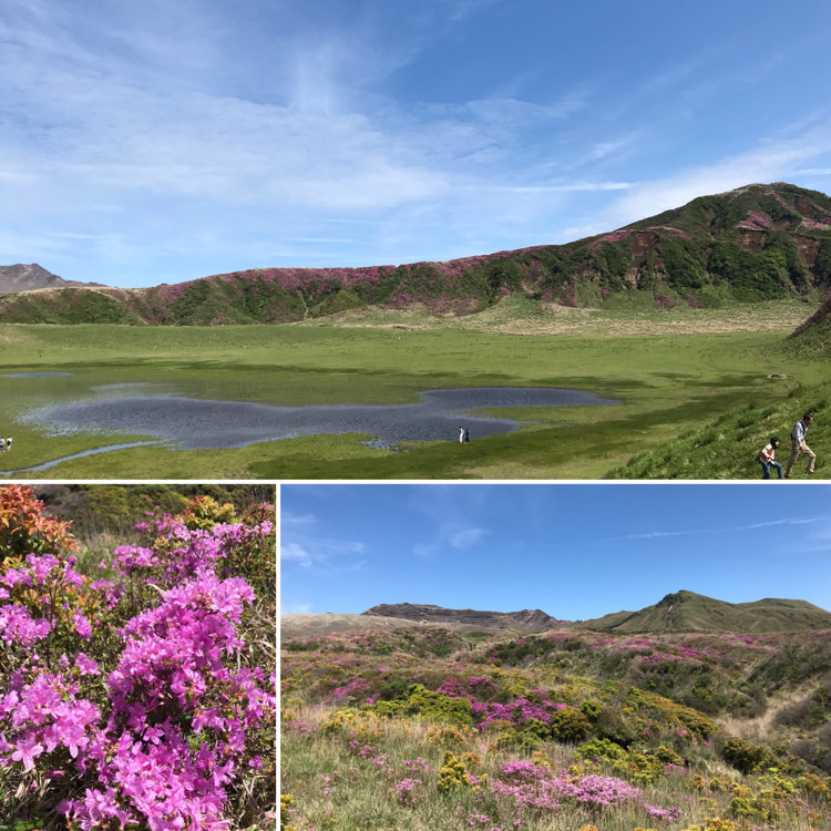 阿蘇を代表する景勝地、草千里ヶ浜を望むレストラン。入り口で販売するソフトクリームが名物で、阿蘇産の牛乳をたっぷり使った濃厚な味。八角形のコーンにのっている。