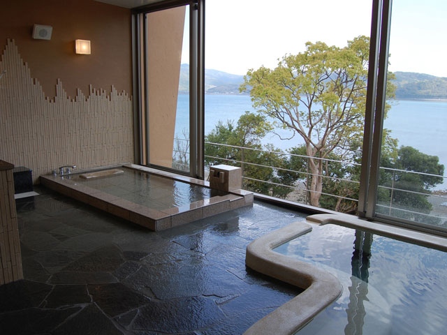 7つの客室に8つの貸しきり風呂。約30畳ほどの大露天風呂も贅沢に貸切で。