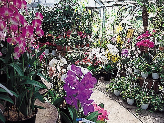 温泉熱を利用した温室には一年中胡蝶ランが並ぶ。無農薬の安心安全なハーブ、ベビーリーフも栽培。子供から大人まで気軽に楽しめる押花体験や機織り体験が人気。