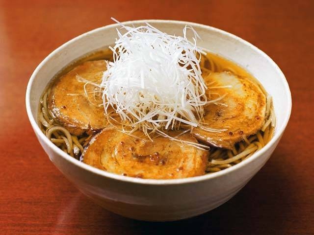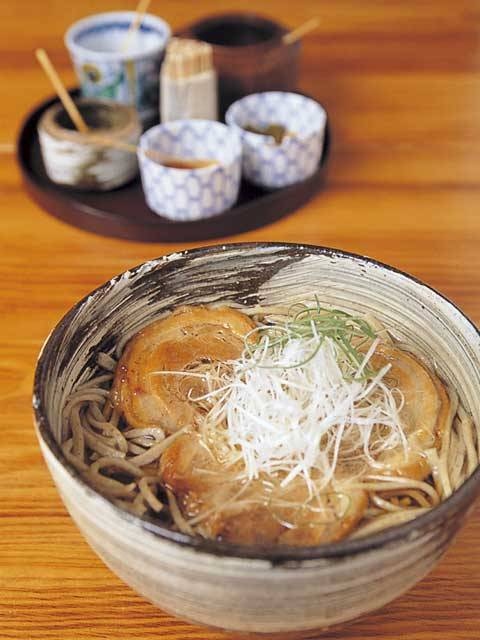 旅館「山荘 無量塔」がプロデュースしたそば処で、信州産のそば粉を使った手打ちそばが味わえる。人気は、丸2日間煮込んでトロトロになった黒豚と、山盛りの白髪ネギがのる黒豚そばだ。