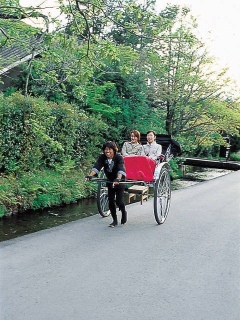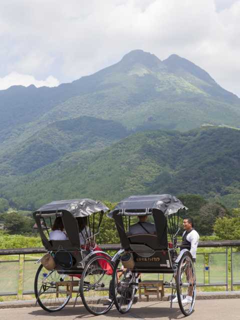 旅情をかきたててくれる2人乗りの人力車を運行。行き先は走行可能エリア内で、俥夫さんが観光ガイドもしてくれる。JR由布院駅前や金鱗湖付近の駐車場などで乗車できる。
