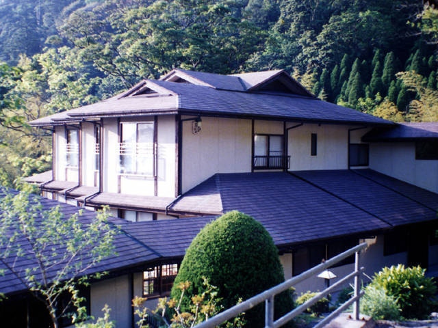 霧島山系より流れ出る天降川の渓流沿い。一万坪の敷地。杉林と雑木に囲まれた心を癒す温泉旅館です。
