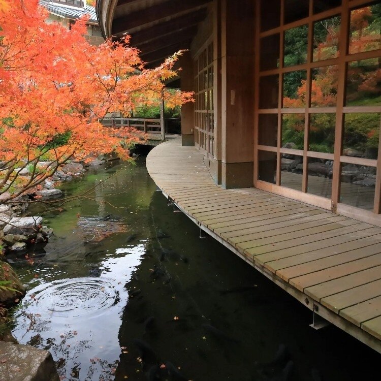 霧島山系より流れ出る天降川の渓流沿い。一万坪の敷地。杉林と雑木に囲まれた心を癒す温泉旅館です。