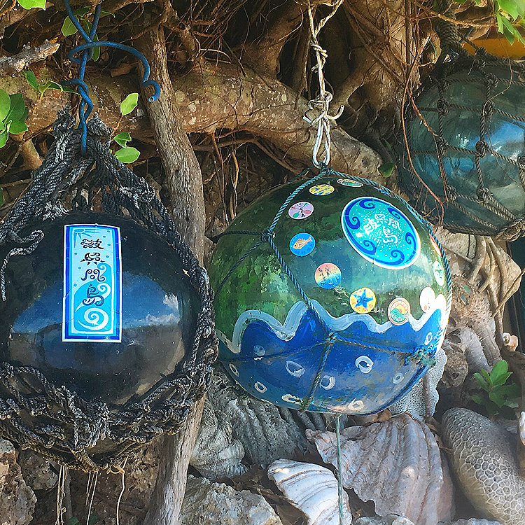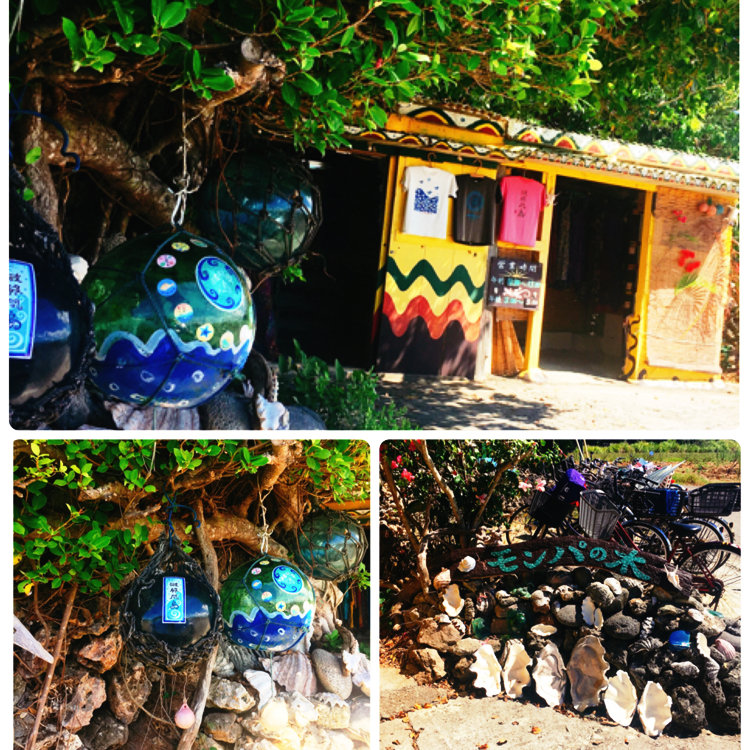 貴重な夜光貝を使った素朴なアクセサリーやオリジナルTシャツを販売。波照間島をモチーフにしたポップでカラフルなTシャツやバンダナは日本最南端みやげとして人気。