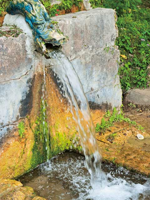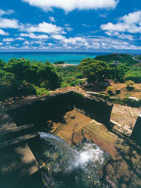 青い海を望む昔ながらの水場