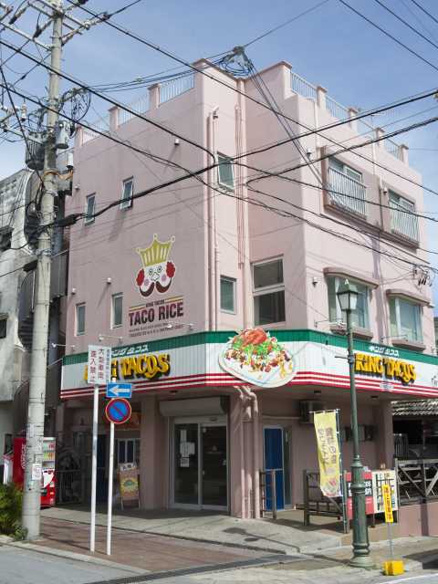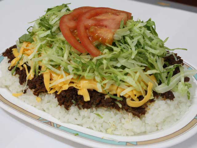 沖縄オリジナルフード、タコライス発祥の店。大盛りライスにタコスミートとレタス、チーズがのったタコライスはもちろん、チーズバーガーやポテトフライもみんなビッグサイズだ。