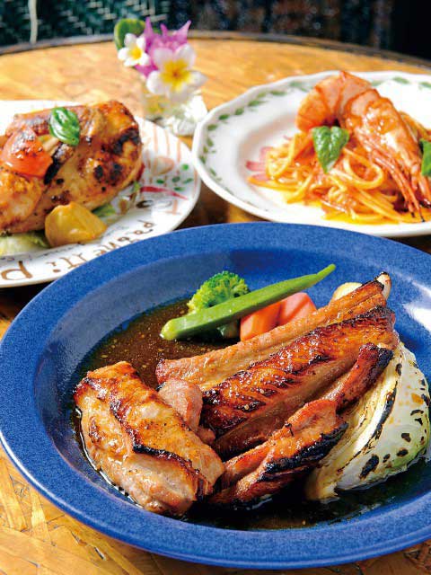 異国情緒が楽しめるおしゃれなレストラン。沖縄産の食材が地中海沿岸諸国の料理法で味わえる。客席が地中海や南フランスの民家といったテーマごとに分かれた造りになっている。