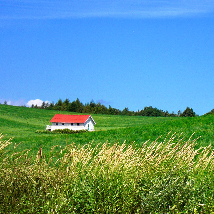 赤い屋根のある丘