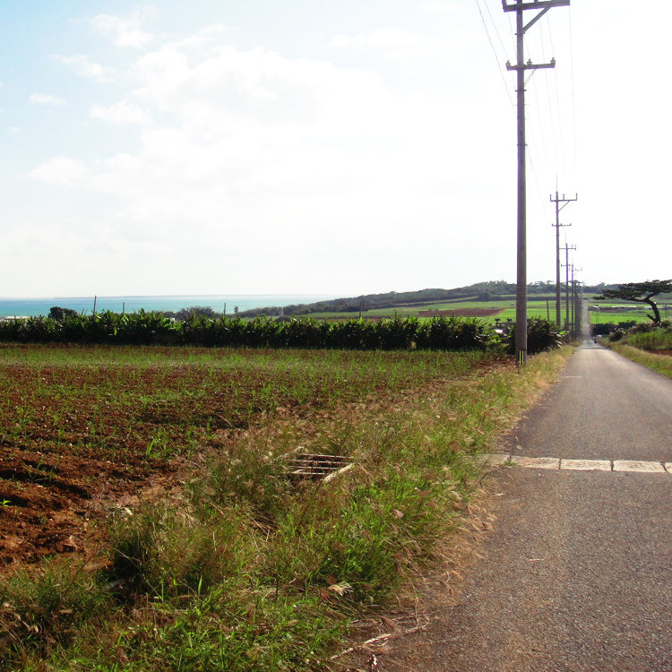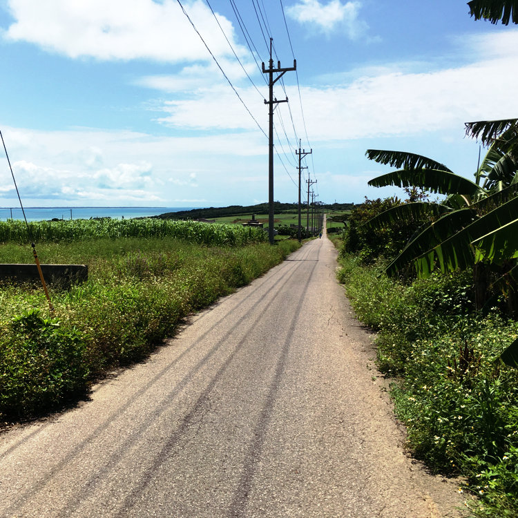 ドラマのロケにも使われた、サトウキビ畑をつきぬける一本道
