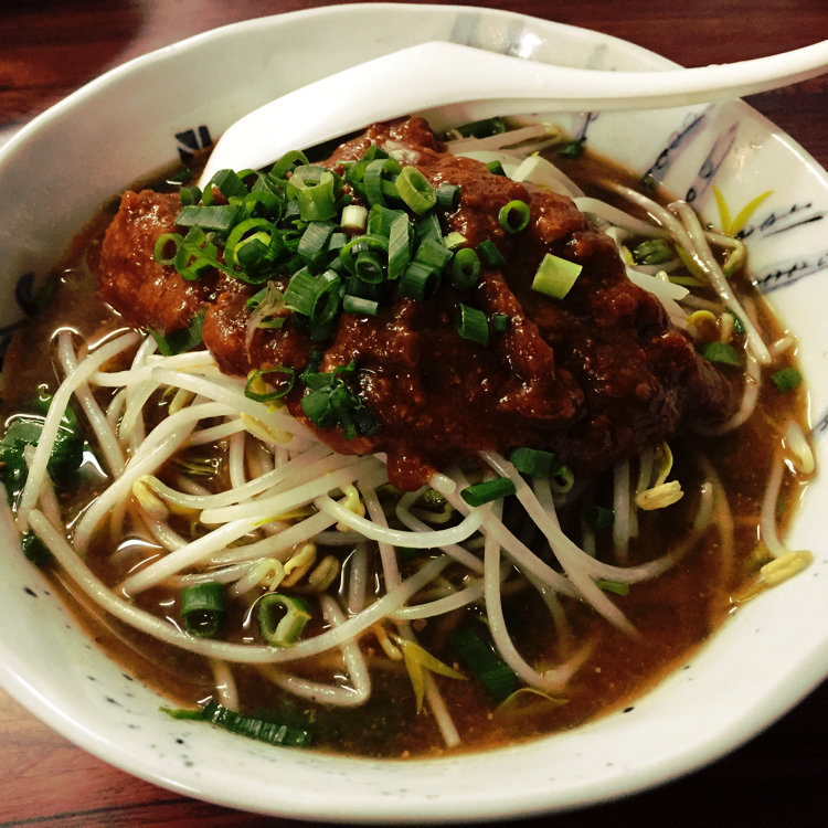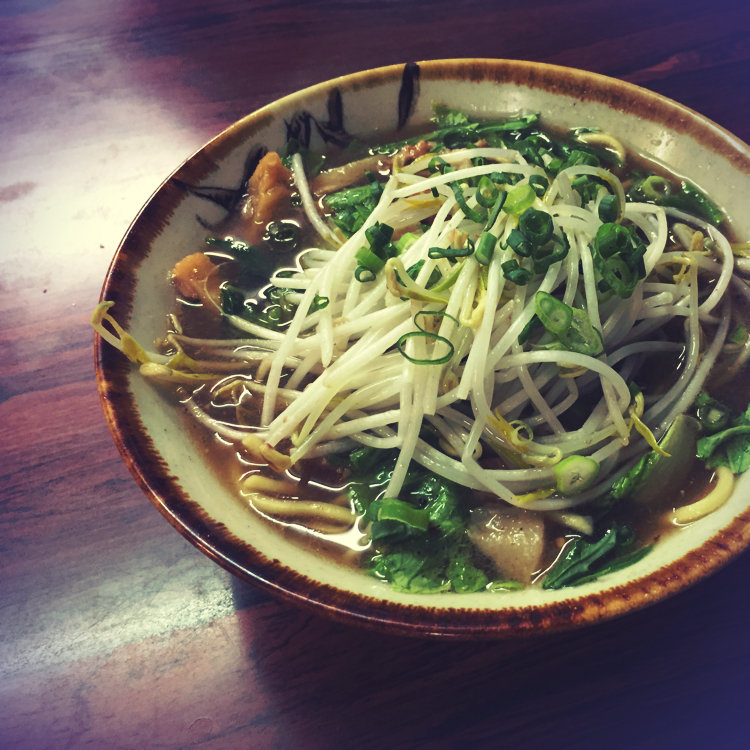 宮古味噌のスープで味わう八重山そばが食べられる食堂。モヤシや葉野菜がたっぷりのり、具だくさんなのが魅力だ。味噌の香りと味に人気が集まる。