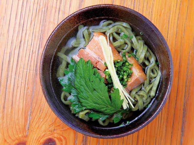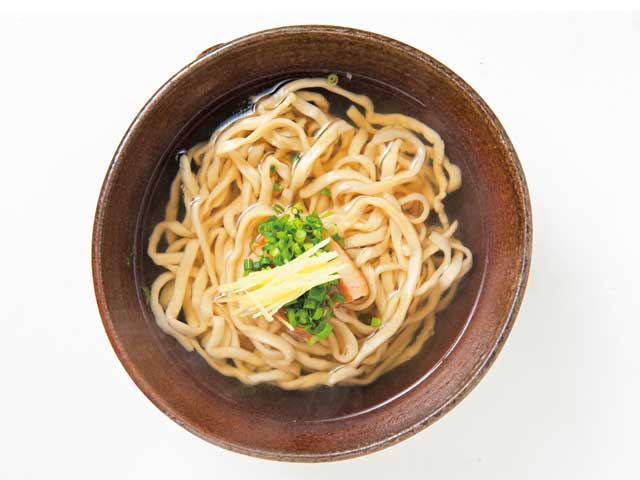 無漂白の小麦粉をブレンドして2日間かけて作る手打ち麺が自慢。強いコシが特色で、カツオ風味のスープと相性バッチリ。冷やしそばなどのオリジナルメニューもある。