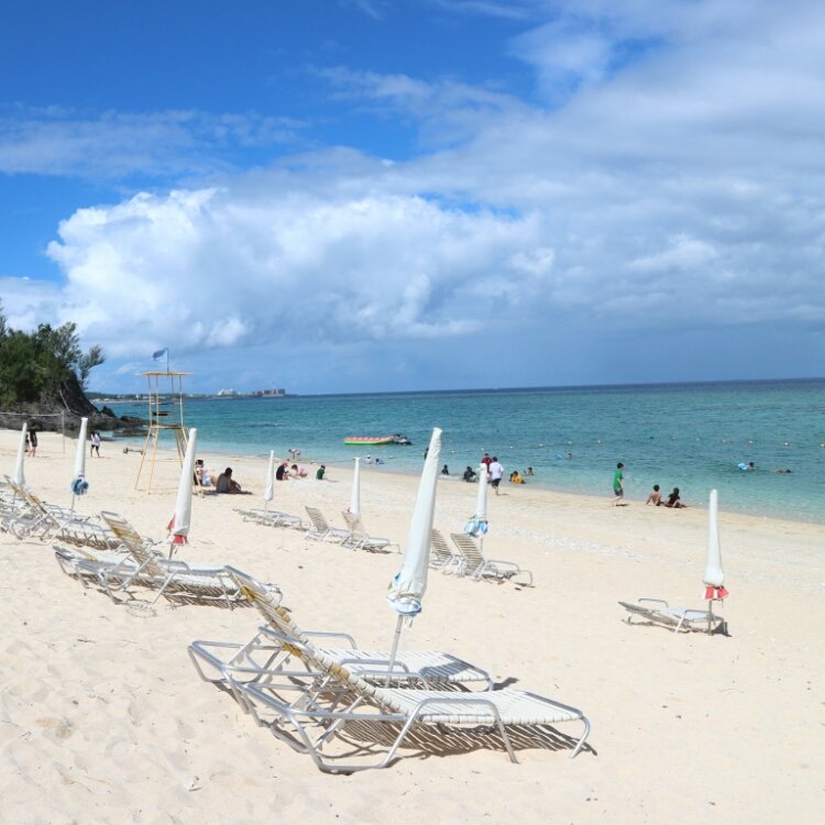 教会が管理するビーチ。まわりを岩場に囲まれ、緑の芝生から白い砂浜が続いている。プライベートビーチのような雰囲気のなか海水浴が楽しめる。更衣室とシャワーを備える。