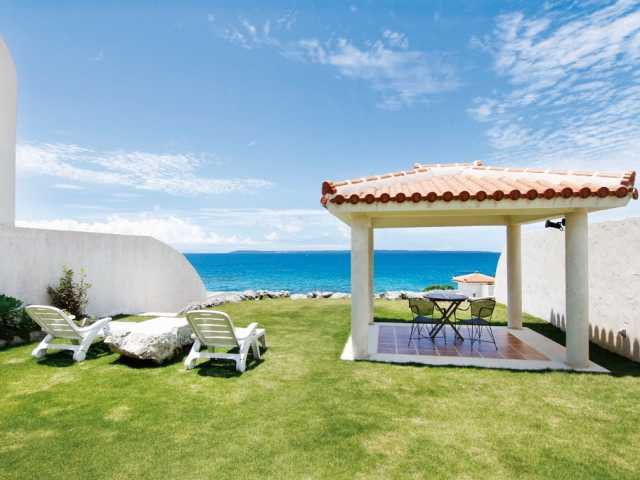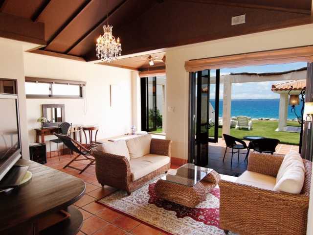 スイートヴィラ5棟の部屋がすべてオーシャンビューになっている池間島のリゾートヴィラ。白砂の美しいビーチにヴィラの芝生の庭から直接出かけられるのが魅力。