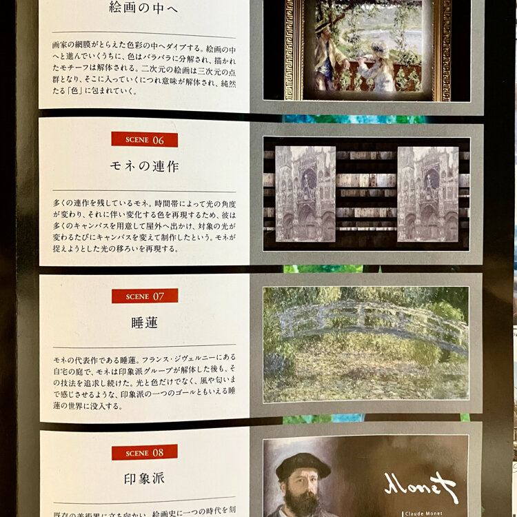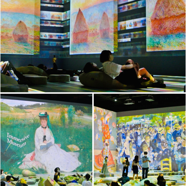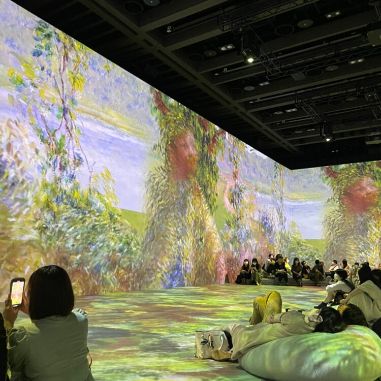 【イマーシブミュージアム】に行ってきました。 印象派画家の作品をデジタル映像で表現した体験型アートです。 * 写真1枚目は会場内のカフェでいただいたアイスティー。 👨‍🎨🎨モネのパレットをイメージしたクッキーが付いていました。 睡蓮が描けそうなパープル系の絵の具が素敵でした😊 美しいカフェメニューも注目ですよ。 * 会場は 横20m、奥行34m、高さ6m 巨大な空間全体がキャンパスとなり デジタル映像が投影されます。 上映時間は約40分。何度観てもOK👍。 8つのシーンに別れていて複数の作品がコラージュのように次々と投影されます。 まるで🖼絵画の世界に入り込んだような没入(イマーシブ)体験が出来る仕掛けになっています。 白い服を着ていけば映像が照射されて 絵画の一部になれちゃいます😊 * 上映時間のインターバルでは 自撮りしたり 写真を撮りあったり 皆さん思い思いに楽しまれていました♡ クッションに寝転んだり歩き回ってもいいんです 楽しみ方は自由自在。 お行儀よく鑑賞する美術館ではありません。 * お子様や美術鑑賞初心者さんにもおすすめです💕 * 見るだけではなく体全体で絵画を浴びる新しくて楽しい鑑賞イベントです。 説明が難しいので ぜひ体験して見てくださいね♡ 沢山の素敵ユーザーさんも訪れていらっしゃいます。 日本橋三井ホールで 10月29日(土)までの開催です‼️ 印象派作品の生命力を感じますよ〰️👏👏✨ * 📷´-2022.9.6 だいぶ投稿が遅くなりました🙇‍♀️ * #休日ドライブ #秋いろとりどり #Myことりっぷ #ことりっぷ東京 #日本橋三井ホール #コレド室町 #日本橋 #イマーシブミュージアム #パレットクッキー #モネ #お写ルン歩 #カメラ #印象派#fumitubu #ふみつぶ〜ぬ