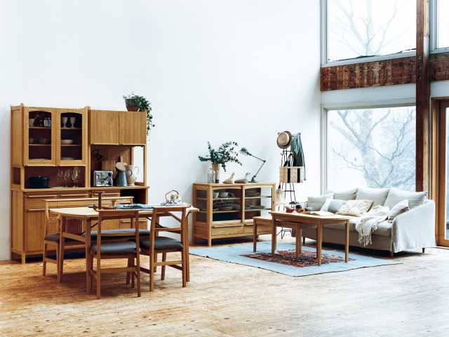 心地いい空間づくりをコンセプトにオリジナル家具やラグ、カーテン、ファブリックなどセレクト雑貨がそろう。