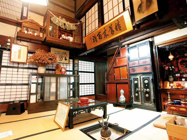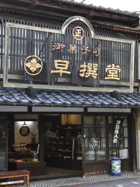 典型的な町屋づくりで、平成18年に国の登録有形文化財に指定された和菓子の老舗。店内には昔懐かしいお菓子の木型やケースが並び、和風でモダンな店内と調和した趣が感じられる。