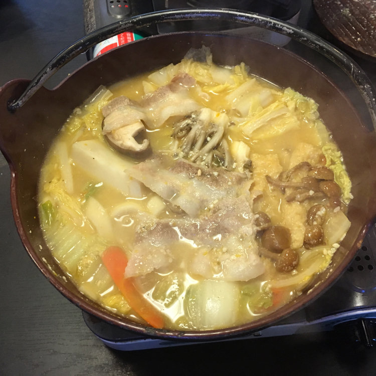 山梨ワイン豚、自家産無農薬野菜等、山梨の厳選素材が詰まったほうとう。味の決め手は、歩成特製の黄金味噌。