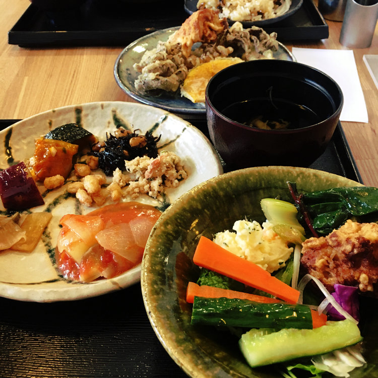 キノコと野菜の生産元が直営するレストラン。旬の食材を使った旬菜や、雑穀入りご飯などで構成されている。