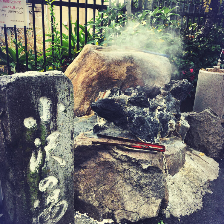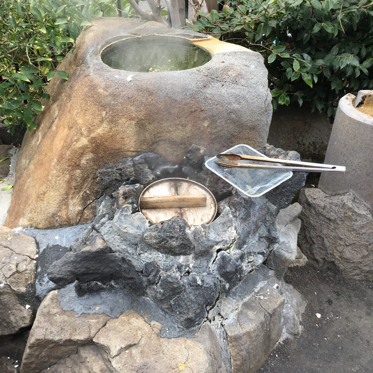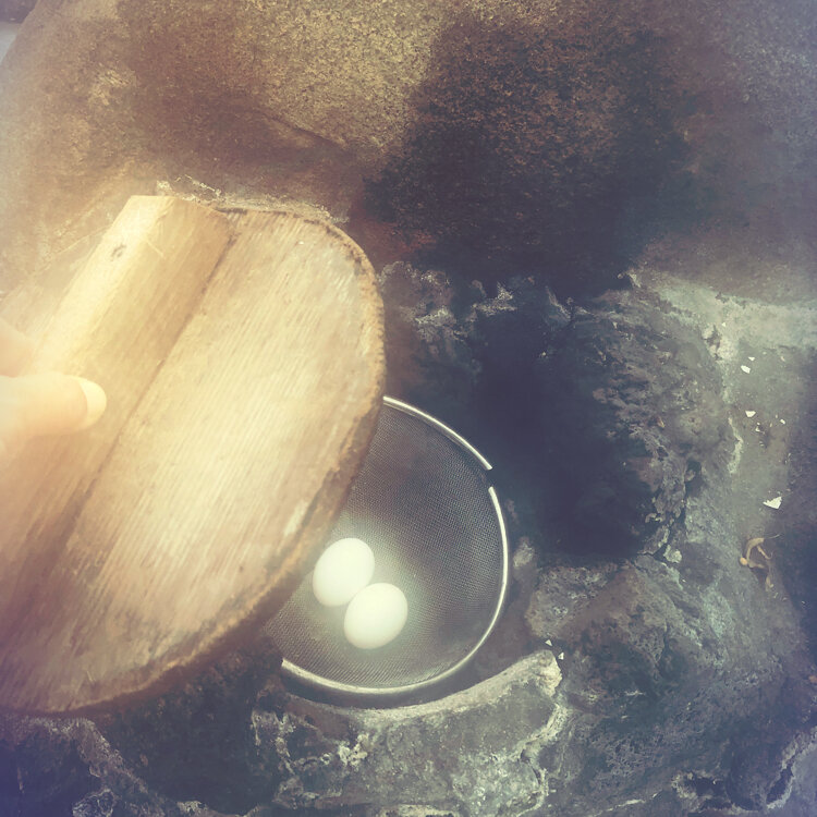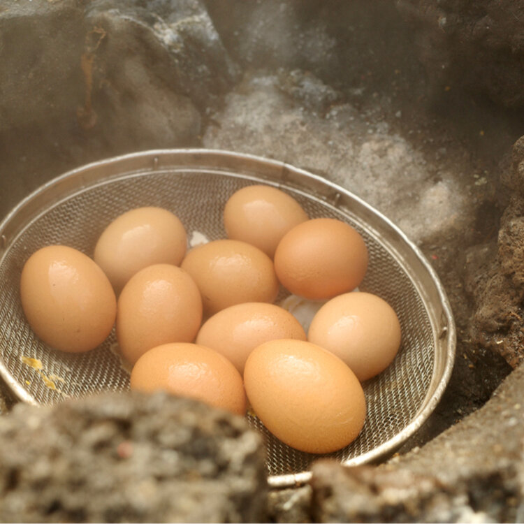 人が大きな声で呼べばたくさん、小さな声で呼べば少しのお湯が湧き出たという伝説の湯。現在はここで温泉たまごを作ることができる。