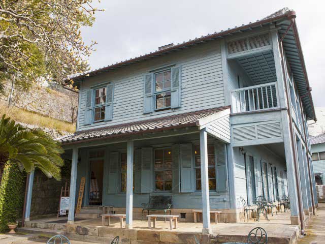 オランダ坂沿いに建つ洋館。明治27(1894)年頃に賃貸住宅として建てられたもので、イギリス人、アメリカ人の住居となったのち、昭和の初めにはフランス代理領事の住居兼領事館としての役割を果たした。現在、1階は市民ギャラリーと居留地時代の味を再現したコーヒーが味わえる喫茶室、2階の一角には、企画展を行うギャラリーがある。また、レトロファッションの貸し出しもしている(有料)。