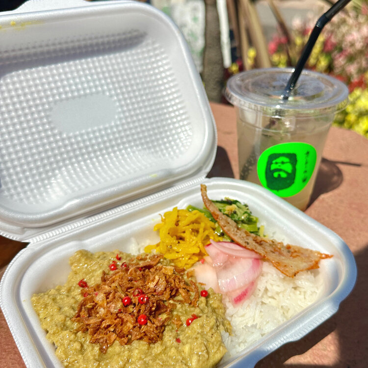 ♡マルヤガーデンズ蚤の市&カレーピクニック♡ 昨日は鹿児島の天文館にある商業施設マルヤガーデンズの屋上庭園ソラニワであっていたイベントへ。 もともとカレーのイベントを知って、ぜひ行きたいと思っていたのですが、蚤の市も同時開催だったみたいで想像以上に楽しめました。 蚤の市は見ているだけで心が満たされ、レトロ感にわくわくしながら眺めました。 ・ そしてお目当てのカレー♡ 鹿児島県内から主にスパイスカレーのお店が10店舗くらい出張してきていて、どこも魅力的で迷いましたが、"カレーの山"という間借りカレーのお店に決めました。グリーンキーマが気になったのと、アチャールなどもついていておいしそうで♡ 唐辛子的な辛さよりもスパイスの複雑な味わいが優勢で、ピンクペッパーがすばらしいアクセント。お米も長粒子!スパイスカレーには日本のお米よりインディカ米派にはうれしいです。(日本のカレーには日本のお米がマスト!) 一緒に頼んだ自家製ジンジャーエールも美味しすぎました。 何も予定を入れなかったGWですが、自転車で久しぶりのおでかけ。青い空と桜島を見ながらの往復も気持ちがよかったです。 #マルヤガーデンズ #天文館 #鹿児島 #蚤の市 #カレーピクニック #カレーの山 #間借りカレー #カレー好き
