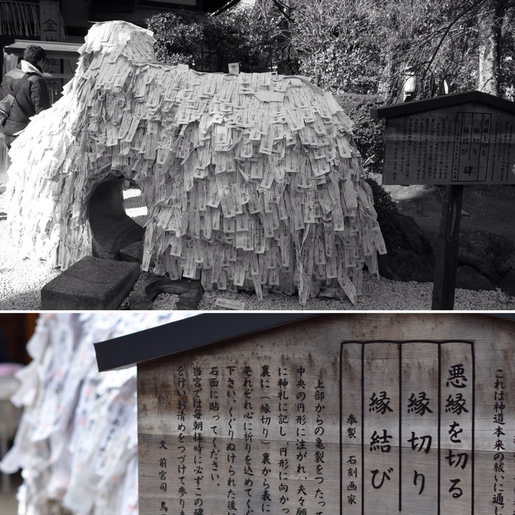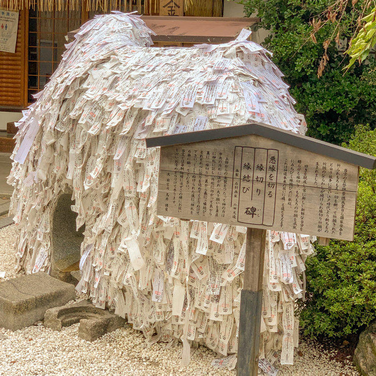 〜 節分の日に 〜 「安井金毘羅宮」 『悪縁を切り良縁を結ぶ祈願所』として有名な「安井金毘羅宮」にお詣りしました。 今年はご縁を大事にしようと思い、悪縁を切り良縁を結ぶ「縁みくじ」をひきました。 ここ数年は、「門戸厄神」でお正月におみくじをひく事が多かったのですが、今年は長蛇の列が出来ていた事も有りますが、ふと「安井金毘羅宮」の縁みくじをひいてみたいと思ったのです。 茶色の筒の中から出て来た棒の番号を社務所の方に伝えると、袋に入った縁みくじを頂けます。 ドキドキしながら袋を開けると甘い香りがして、「縁みくじ」を開くと、雅なお姫様が現れました。 御祭神である崇徳上皇の和歌や運勢、吉凶が書かれていました。 ユニークなのは、自分の周りの人との縁、仕事の縁、病気の縁など全ての縁の良し悪しをパーセントで表示した「あなたがご縁を持っている方との悪縁度」です。 私がひいた「縁みくじ」は、一番、大吉。 悪縁度は5%。 周囲の方々から助言を得て、物事すべて順調に進むそうなので、現在のご縁を大事に、人の意見に耳を傾けて、素敵な一年にしたいと思います。 「次におみくじをお受けになるまで、大切にお持ち下さい。」と書かれていたので、おみくじ掛けには結ばず持ち帰り、御守りと一緒に大切に御守り袋に入れてあります。 #節分の日に#安井金毘羅宮#悪縁を切り良縁を結ぶ#縁みくじ#悪縁度#大吉#Myことりっぷ