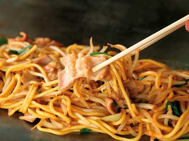 アツアツの鉄板上でたっぷりのネギ、モヤシ、ホルモンを焼くホルモンソバ。専門店ならではの新鮮なホルモンに濃厚な特製タレが絡んで絶妙。