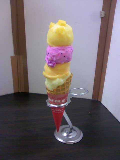 旬の沖縄フルーツとミルクジェラートをミキシング。濃厚な果実の甘みが良い。おすすめはジェラートの中に果肉をそのまま混ぜた季節のフルーツ生ジェラート。