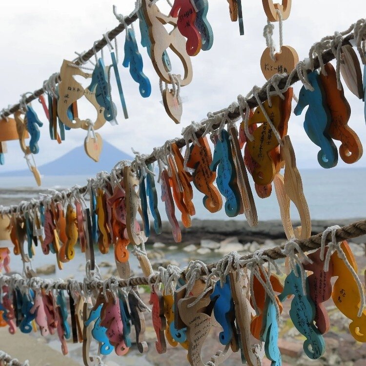 タツノオトシゴハウス 日本地図作成のため全国を実測した伊能忠敬が「天下の絶景」と絶賛した景勝地の番所鼻公園内にあります。 眺めがよく、晴れていると硫黄島など見えます! 1枚目の開聞岳とその手前に潮だまりが見えます。 この潮だまりは、潮が引いている時は、1周歩けます🚶‍♀️ 竜宮城の入口とも言われていて、本当にそんな感じ🐢🌊✨ タツノオトシゴハウスは、日本唯一の観光養殖所場。 オスが袋で卵を育てて出産する、不思議な生き物! 赤ちゃんのタツノオトシゴから、いろんな色の種類がいます。 2枚目では、ちょっと分かりづらいですが、私は可愛らしい泳ぐ姿を動画撮りました😆 動きが、ずーーーっと見ていても飽きない! 店内はオブジェも、グッズもタツノオトシゴだらけです🐚‎🤍 タツノオトシゴは、幸運のシンボルと言われているので、お土産買いたくなりますね😊 外には、タツノオトシゴの絵馬があり、カラフルでとても可愛いです🩷💛💙 オススメスポットです‼️ かなり前にダイハツ🚗のコマーシャルで、山﨑賢人さんがタツノオトシゴハウスでタツノオトシゴを覗き込んだりするシーンが流れ有名になりました。 2023.7.30 鹿児島は、今日から台風🌀接近予報 まだ曇りで穏やかですが、警報🚨もなったので、何も被害ないことを祈って🙏 #カメラ旅 #私のことりっぷ旅 #美しい町 #タツノオトシゴハウス #南九州市 #鹿児島観光