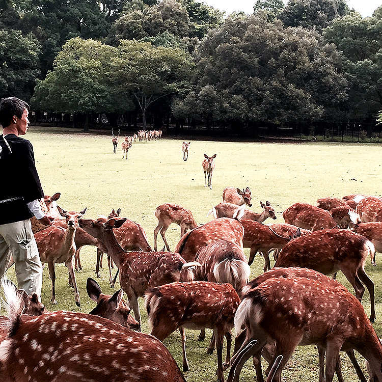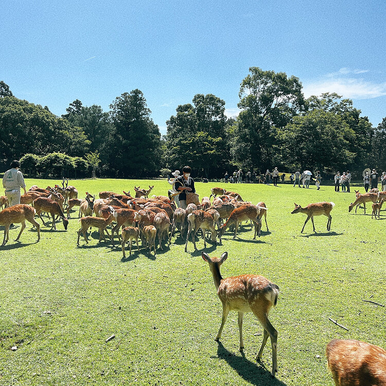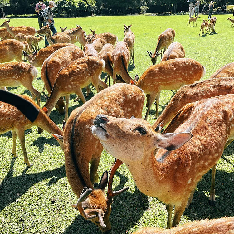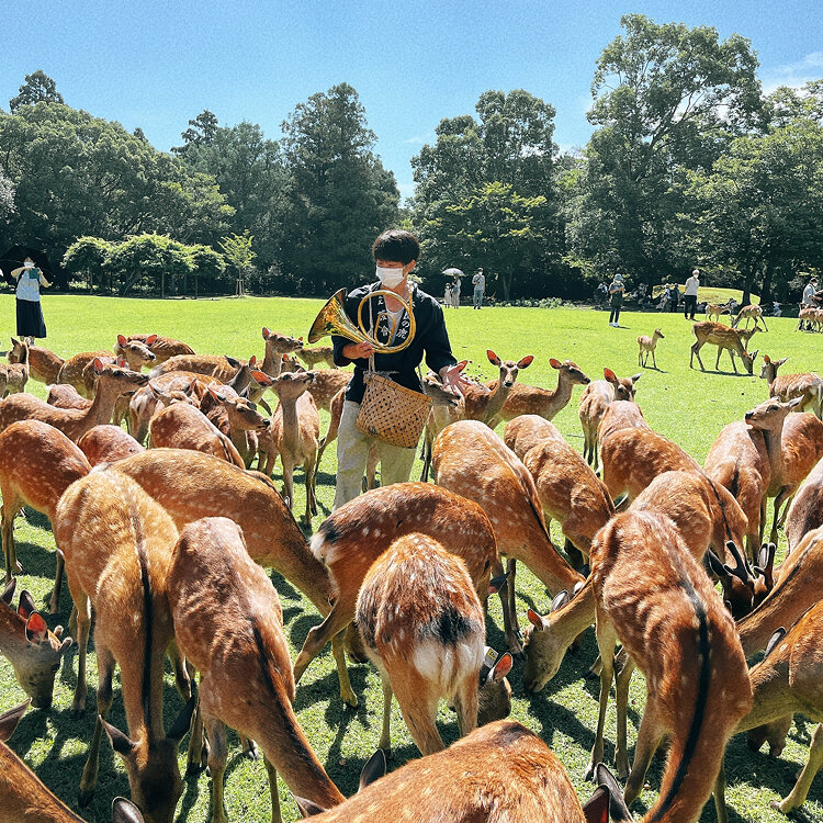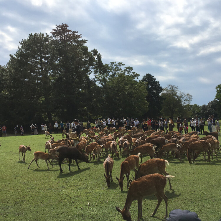 【鹿寄せ】 「奈良の鹿愛護会」が 観光協会や旅館業の組合の依頼で行なっている行事です📯 無料開催は夏と冬に行われるようですが 詳しい時間や日程は愛護会のホームページで確認できます 春日大社参道の南側にある「飛火野(とびひの)」 という広い場所で行われます 鹿愛護会の方による鹿寄せの説明の後 ナチュラルホルンが ♫プォー、プォー…と鳴らされると 林の奥から数十頭の鹿がゾロゾロ 時にはダダダダァーっと集まって来ます 日によって様子が違うのですが 林から出てくる鹿の群れは見応えがありますよ🦌🦌🦌 ご褒美にドングリを撒き与えると、あたりは ゴリゴリボリボリとどんぐりを噛み締める音で賑やかです😋 …その飛火野の辺りをナワバリにしていた 垂れ耳鹿の『ロクさん』が 虹の橋を渡って春日の神さまの元へ帰ったそうです🌈😢 4、5枚目は先月下旬に出会った時のもの 間近に寄ってきて挨拶してくれたので 🤳を撮らせてもらったのが最後となりました これからは雲の上から春日の鹿たちを見守ってくれると思います🙏✨ #ファンタジーの世界 #Myことりっぷ #鹿寄せ #飛火野 #奈良の鹿愛護会 #奈良の公園の行事 #ロクさん  本名は#鹿乃氶(ろくのじょう) ↑漢字は間違ってるかも💦 #安らかに
