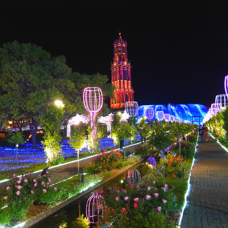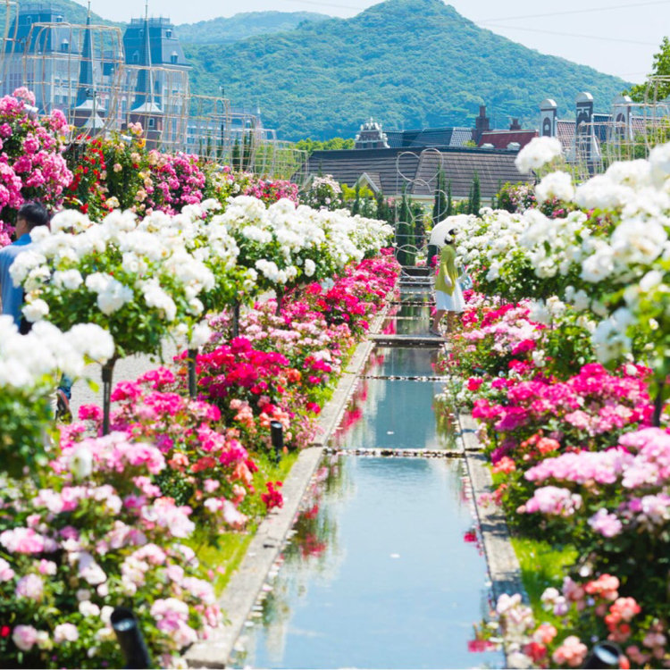 今が見頃のハウステンボス「バラ祭」 例年より約1週間早く、バラ満開宣言! 毎年恒例となるアジア最大級の「2000品種120万本のバラ祭」を5月13日から、ハウステンボスで開催。 今年は約1万本の「光るバラのガーデン」が初登場、ハウステンボスが朝から夜まで美しいバラの香りにつつまれます。 宮殿や運河などヨーロッパの街並みと色鮮やかなバラが調和する、ハウステンボスでしか見ることのできない絶景。景色だけではなく、ガイドツアーやローズマーケット、食べられるバラなどのイベントも充実。「音楽とバラの広場」での一流アーティストによる生演奏鑑賞、「薔薇のホテル」での宿泊など楽しみ方も様々です。 イルミネーションランキングで4年連続1位を獲得する「光の王国」でも好評の、66メートル地点から流れ落ちる人気のイルミネーション「光の滝」も、6月30日まで延長決定。ライトアップされたバラとのコラボレーションをカメラに収めよう。 ... ハウステンボス「バラ祭」 ... 日程:2017年5月13日(土)〜6月5日(日) 時間:9時 ~ 22時 場所:ハウステンボス 住所:長崎県佐世保市ハウステンボス町1-1 定休:年中無休 電話:0570-064-110(総合案内ナビダイヤル) ... PHOTO:©ハウステンボス/J-17959