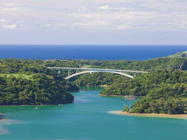 本部半島と屋我地島を結ぶ全長315mの橋。眼下に景勝地のワルミ海峡を望む絶好のドライブルートとして知られ、沖縄美ら海水族館など本部半島の観光名所と古宇利島との間をつないでいる。通行無料。