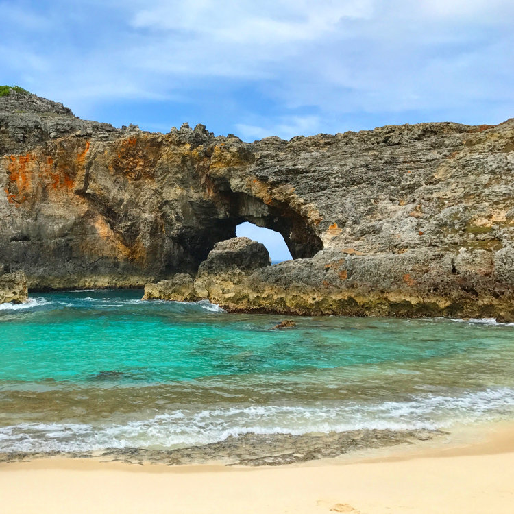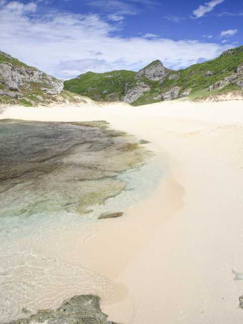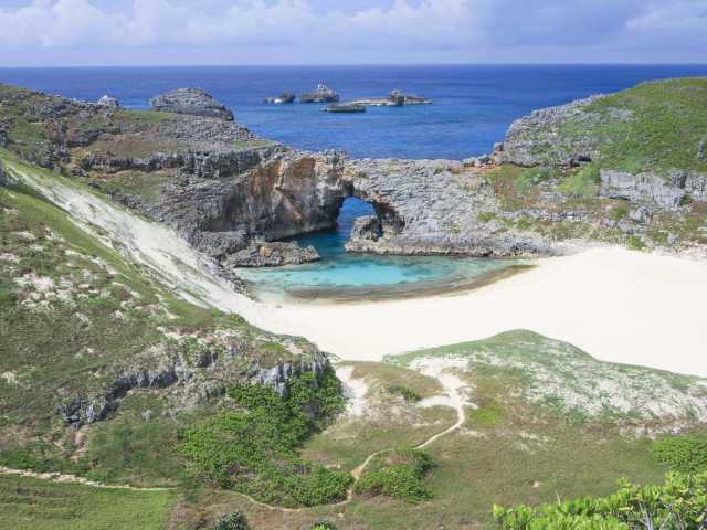 石灰岩から成る沈水カルスト地形の島で入江が美しい。魅力的な景観だが船での上陸地点はラピエと呼ばれる尖った岩で足場が不安定なため、注意を要する。上陸には東京都認定ガイドの同行が必要。
