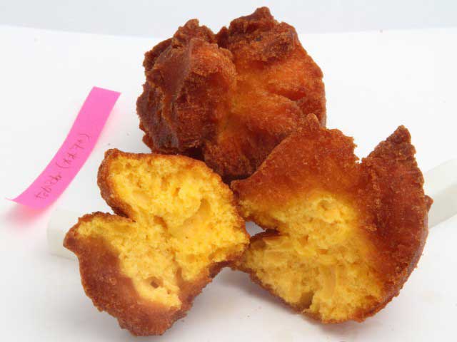 生のカボチャを使うサーターアンダギーは外側はカリっとして、中はふわふわの食感。お土産にもぴったり。