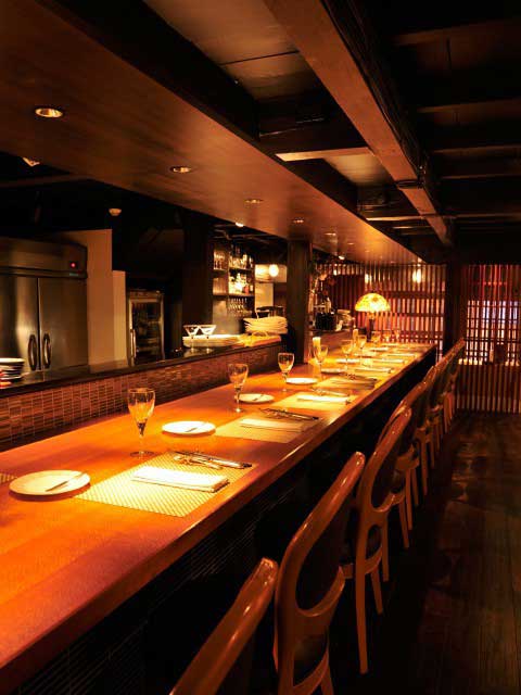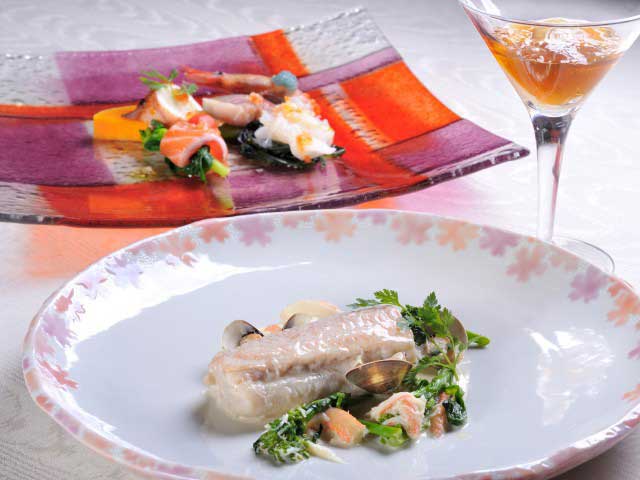 文政3(1820)年築のお茶屋を生かし、オープンカウンターでお客とのコミュニケーションを重視しながら本格派のフレンチを提供する。地産地消が基本で、特に魚介は地物中心だ。