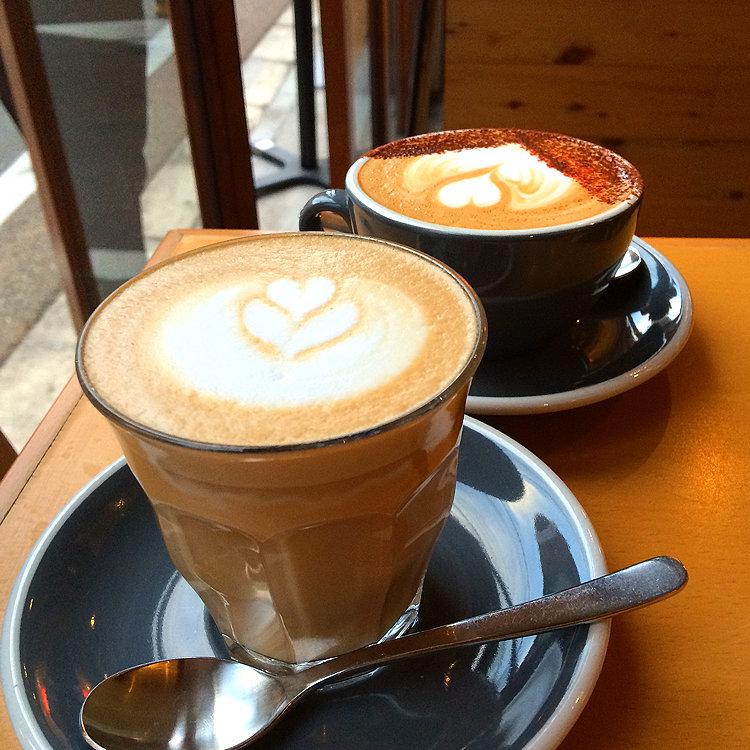 オリジナルブレンドの本格エスプレッソや宇治抹茶ラテでひと休み