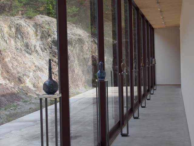 佐賀県有田町出身の陶芸家葉山有樹さんの作品を展示するギャラリー兼カフェ。まるで美術館のような館内には、世界の文化にふれて、自由な発想でつくった作品が並ぶ。