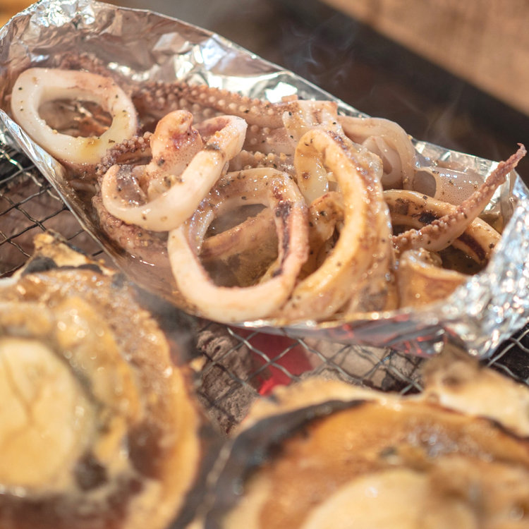八戸 八食センター七輪村さん🐟 、 青森屋さんを後にして👋😊八戸駅に向かいます🚃 、 八戸駅からバスに乗って向かうのは🚌 憧れの八食センターです🥹 、 たくさんのお店が集まりお食事処も完備🐟✨ 、 福井県の日本海お魚センターと似た雰囲気ですね☺️ 、 お寿司や海鮮丼がある厨スタジアム🏟️ 旬の素材が集まる味横丁🏮 、 しかしこちらの目玉はなんと言っても七輪村ですよ😊 、 場代500円を払うと炭を用意してくれるので、八食センター内の市場で買った商品を持ち込み焼いて食べれちゃうのだ☺️ 、 124席ありますが土日は1時間待ちとかになるらしい😳 、 11時着🛬八戸港で水揚げされたお魚達が並んでます☺️ ひと通り見てから500円払ってエントリー😊 、 割とおひとり様いますね🙂 、 食器と醤油を受け取り専用カゴでお買い物に行きます😊🧺 、 店によってすこーし値段が違います💁‍♂️ いきなり行ったら迷うのでしっかり下調べしときましょう😊 、 イカ焼き はまぐり 牡蠣 を買って来ました☺️焼いちゃお 、 イカなかなか焼けませんね🙂 貝達が焼けました😊美味しい 、 ホタテとエビを買って来ます☺️ 、 美味しい😋 、 白子とコマイを買って来ます☺️ 、 ホタテの出汁を残してホタテの殻で白子を焼いてみます😊 、 美味しすぎた😳 、 コマイは網にくっついちゃうので牡蠣の殻で嵩上げします凸凹 、 時折牡蠣の殻が爆発して頭に当たりますが気にしません🙂コマイのが大事です 、 ビールも十分いただいて1時間半ぐらいでした🕜 、 ちょうどバスの時間になったので撤収です😊 、 これで行こうと思ってたところは全部です☺️ 、 八戸前沖サバは食べれなかったのでまたいつか来たいです😊 、 #あきらの東北 、 #あきらの牡蠣