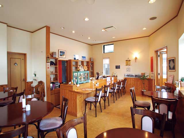 青森のりんごを使用した、コーヒーともよく合う自家製アップルパイ。しっとりふわふわ甘さ控えめの抹茶シフォンケーキも人気。