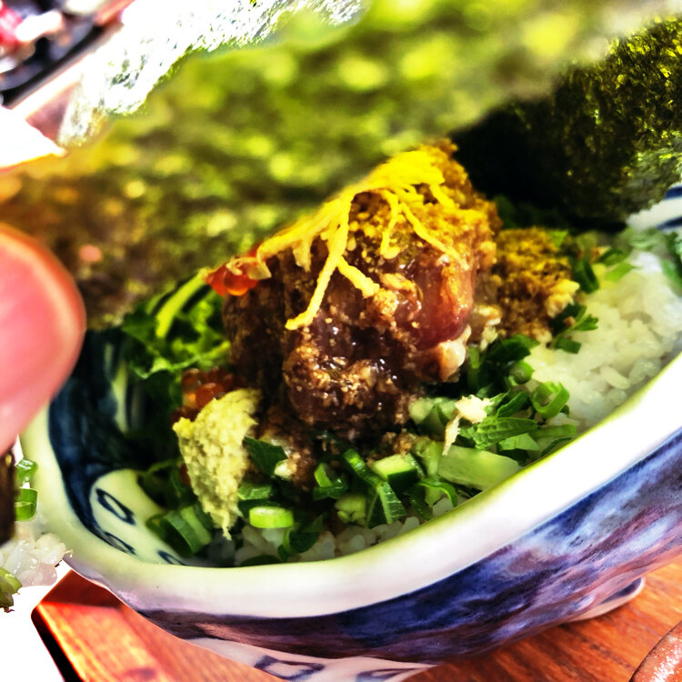 🐟江ノ島小屋🛖 まかない丼🎵 これが食べたくて〜‼️ すてきユーザーさん方も訪問されていて🐟 ことりっぷ記事にも掲載されてます。 ↓以下記事より🪧↓ 名物の「まかない丼」はアジやサバ、イサキなど旬の魚をたたき、秘伝のゴマダレと味噌で和えたなめろうがたっぷりのった人気の一品。大きな海苔でどんぶりをすっぽり覆った、一風変わったスタイルで運ばれてくるのが特徴です。 江ノ島を望む絶好のロケーション。 *・゜゚・*:.。..。.:**:.。. .。.:*・゜゚・* あったか〜い出汁をかけて! 後半は出汁茶漬けで❣️ 出汁のおかわりできますヨォ‼️ 最後まで美味しくいただける海の幸‼️🐟 素材にこだわりを感じます😆 わさびはもちろん❣️伊豆のわさび‼️ 江ノ島の名がつきますが島内にあるではなく、 江ノ島に通じる橋の根本に位置してまーす♪🗺 📍江ノ島小屋 片瀬江ノ島駅🚉近く #私のことりっぷ旅 海苔は小さくちぎってふりかけても、大きめに切って手巻き風にして食べても、お好みでどうぞ。味や食感だけでなく、海苔を持ち上げて中身が現れる時のワクワク感で食事を楽しめる工夫がされています。#美しい町 #らんらんらん #江ノ電 #オトナの社会科見学 #オトナの遠足 #雨の日もオツなもの #鎌倉江の島フリーパス #まかない丼 #海の幸 #江ノ島を眺めながら #わさびは伊豆