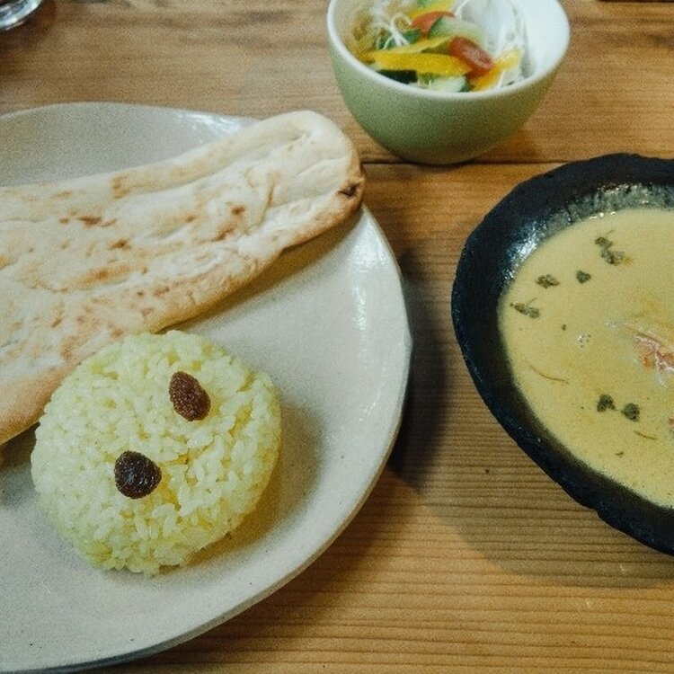 田人の自然に囲まれた森の中のレストランで、自慢のココナツカレーや、チャイ(インド式ミルクティー)とケーキなどが楽しめる。