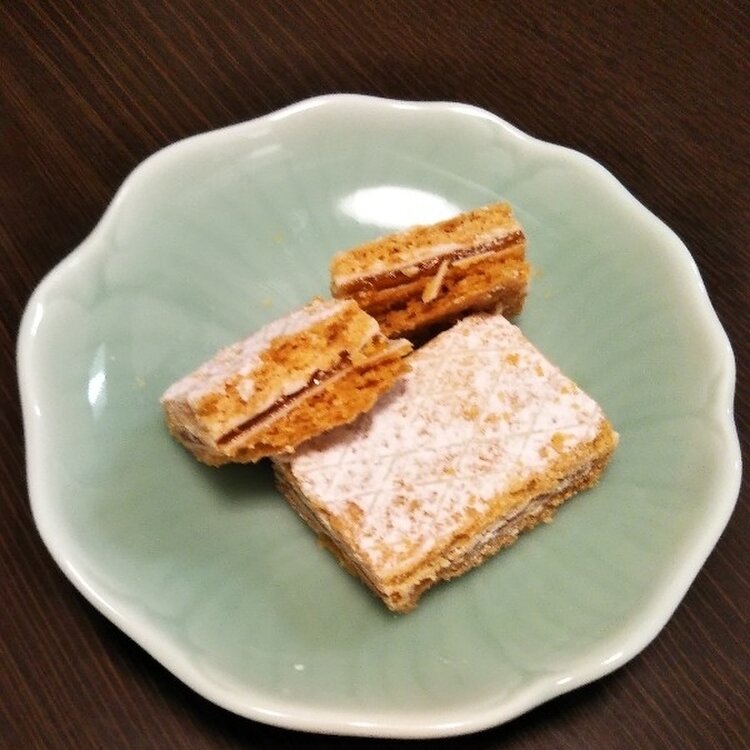 🍁すごーく久しぶりに鎌倉に🍂 鎌倉と言えば豊島屋の鳩サブレーだけど、洋菓子も有名なんだよ……とうちの娘が言っていた。『置石』は豊島屋の洋菓子の店舗🎂🍰 『置石』(おきいし)で何か買いたい❤️ 何が有名なのかな❓️ 🔍️すると圧倒的に 〈ウィンナーワッフル〉がおすすめらしい(^^)d パッケージの裏に印刷されたいた〈ウィンナーワッフル〉の説明……そのまま書きますf(^ー^; 「昭和40年代より作らせて頂いているウィンナーワッフル。中央欧州の石畳をイメージしたお菓子でございます。アーモンドの軽い食感とアプリコットの心地好い甘さのハーモニーをお楽しみください。」 【1枚目の写真】 ハトロン紙に包まれた可愛いパッケージ。一つ持ってお会計をしようとしたら、レジの前に豊島屋の保冷バッグが‼️ 可愛い❤️ マチが広い。約23㎝くらいある。使いやすい〰️(^-^) 税込400円だよ。 一緒にお買い上げ🎵 【2枚目の写真】 ハトロン紙を開けると、こんな感じ😉 【3枚目の写真】 パッケージの上は鳩の切り絵🕊️ 中の袋はかわいいピンク色💗 【4枚目の写真】 中を開けると簡易ケース。個別包装してない。二口で食べられるサイズの菓子が12個入っている。 【5枚目の写真】 食べた感触はサクサク、サクサク 生地は強いて言えば、ケーキの下の部分のクッキー生地のようだね。軽いわ〰️💕 間にあんずジャムとホワイトチョコレートがはさんである。 見た目は地味だけど、上品でかなり美味しいよ😍🎶 リピーターが多いのがわかるわ❤️ 税込700円だし、🕊️かわいい小箱🕊️なので、友人にあげるお土産にピッタリだな。それに賞味期限が25日くらいあるので使い勝手がいいよ➰💮 これ、私もリピートするの決定‼️ 2階にカフェがあります。ぜひ次回は入りたいな\(^o^)/ #鎌倉 #豊島屋 #置石 #焼菓子 #ウィンナーワッフル #お土産図鑑